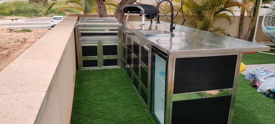 ייצור מטבחי חוץ מנירוסטה, עמידות בתנאי חוץ שילוב של קרמיקה/לוקובונד על הדלתות